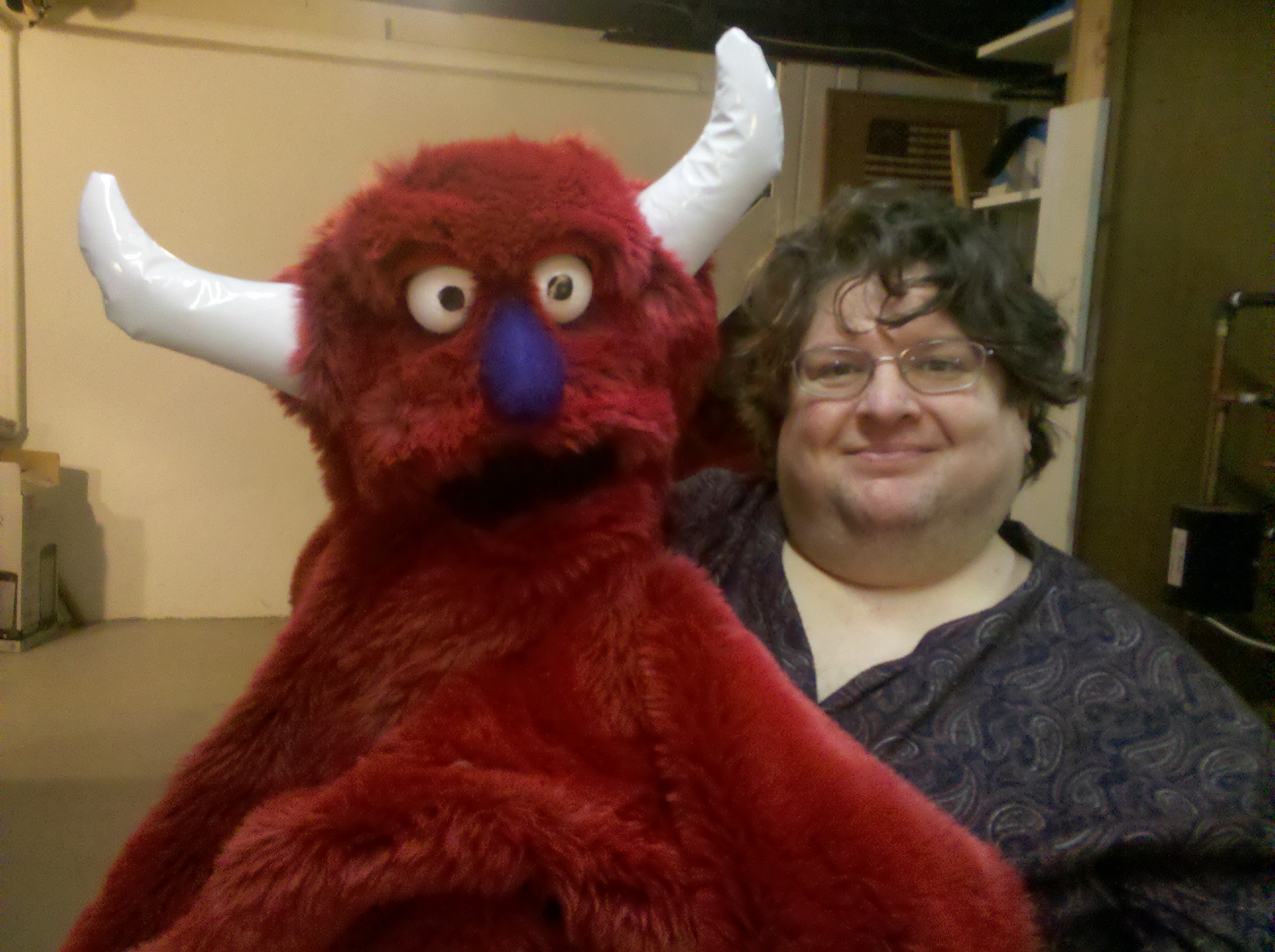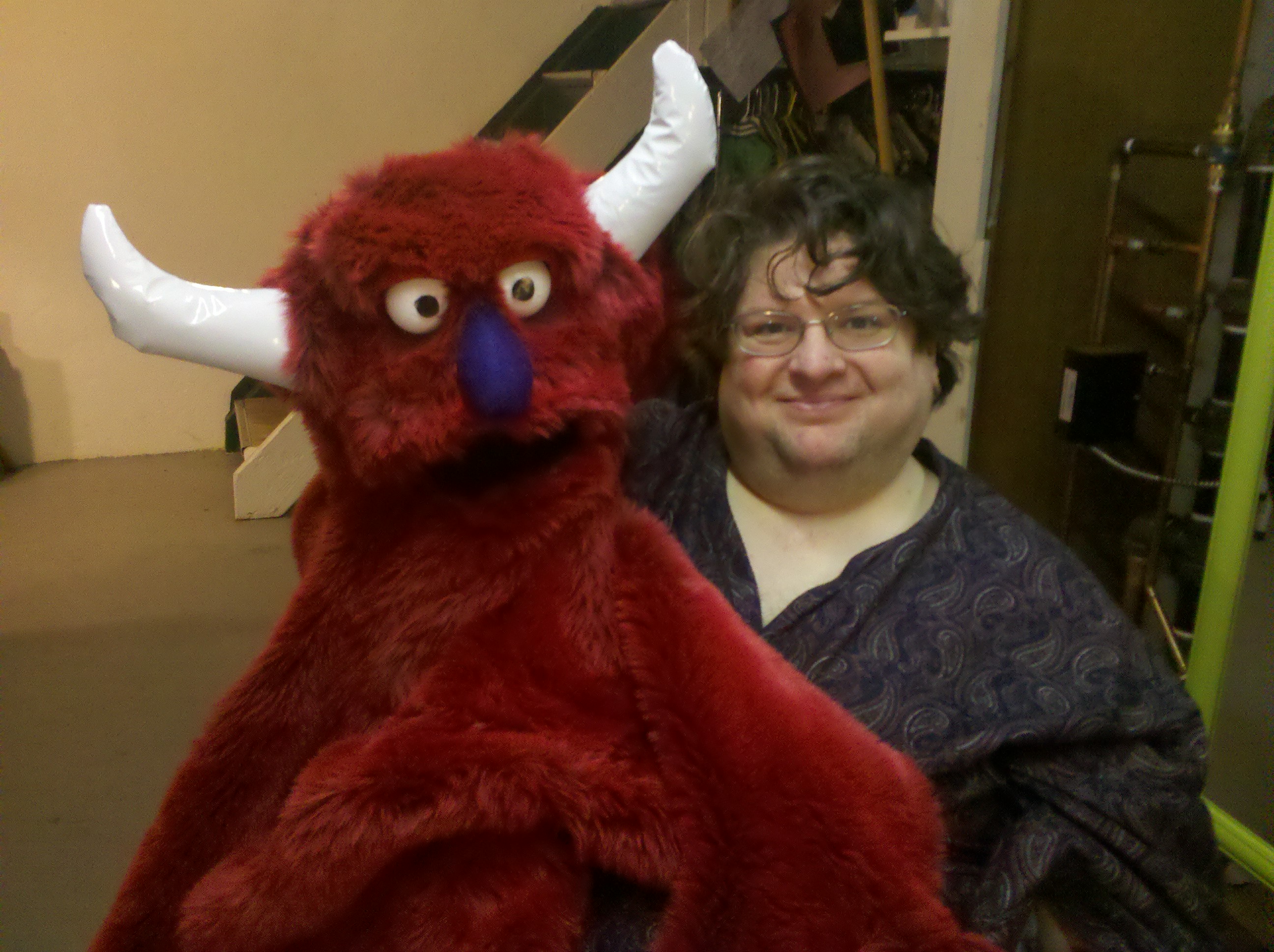 But, of course, that didn’t work very well, either. I constantly had to get coaching from my coworkers about Rudy’s eye focus, and I had to feel my way through everything. Not the way I like to puppeteer.
