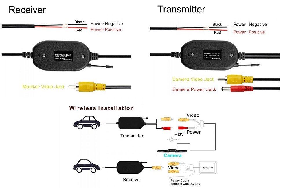 And then I saw a related link for a wireless transmitter that allowed you to transmit video from your camera at the back of your car to your monitor on your dashboard, without wires. This was what I needed.